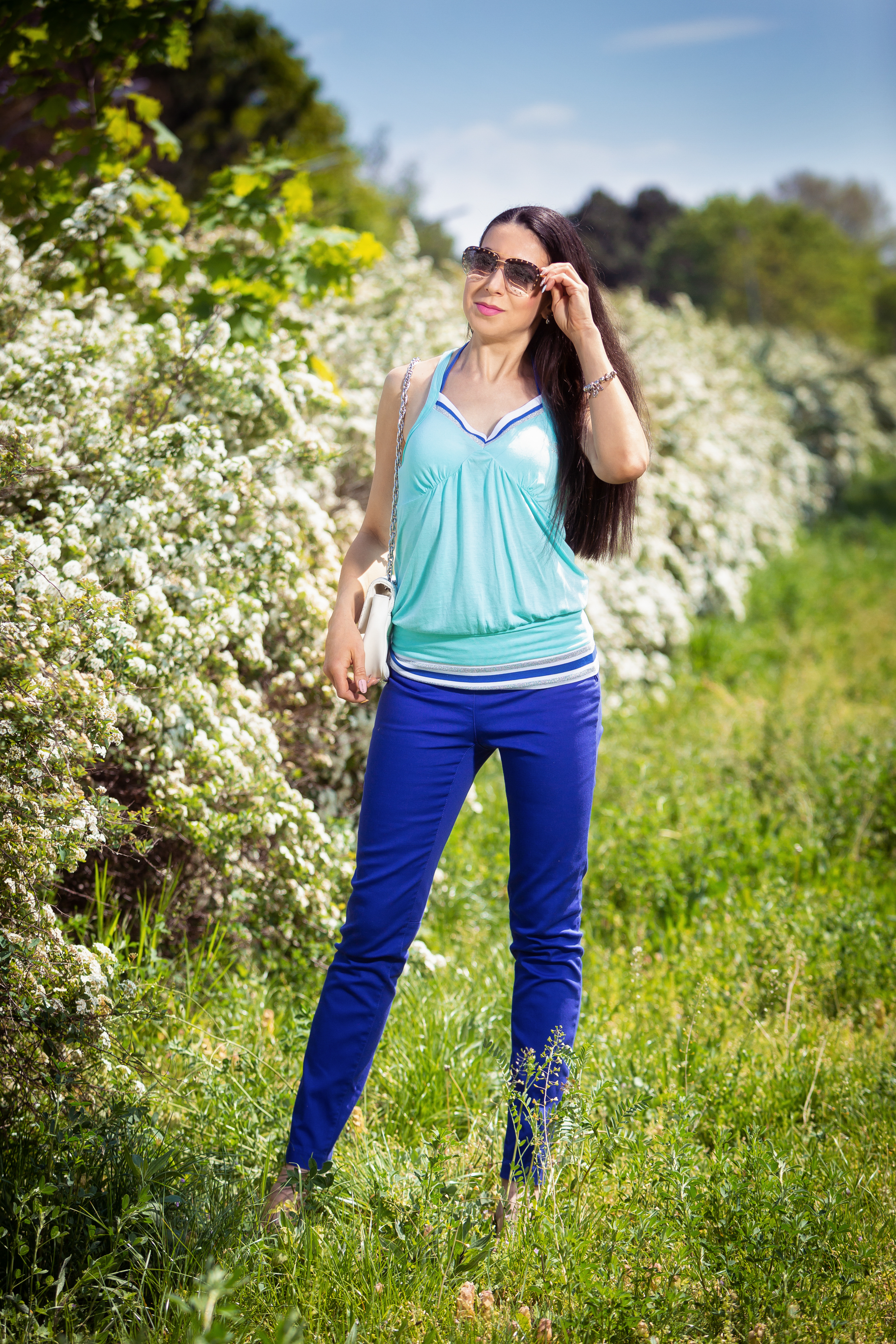 You don’t really see the mint green color very often, especially when it comes to clothing, but it’s trendy right now and is a great choice if you want to add some variety to your daily outfits. Matching it with other colors could be risky but don’t be afraid to experiment. I really love mixing colors together and the mint green is a good base for many others – for instance lavender, pink, blue etc., but dark blue is my favourite. I match a mint top with dark blue trousers and finish that with a white bag and shoes.