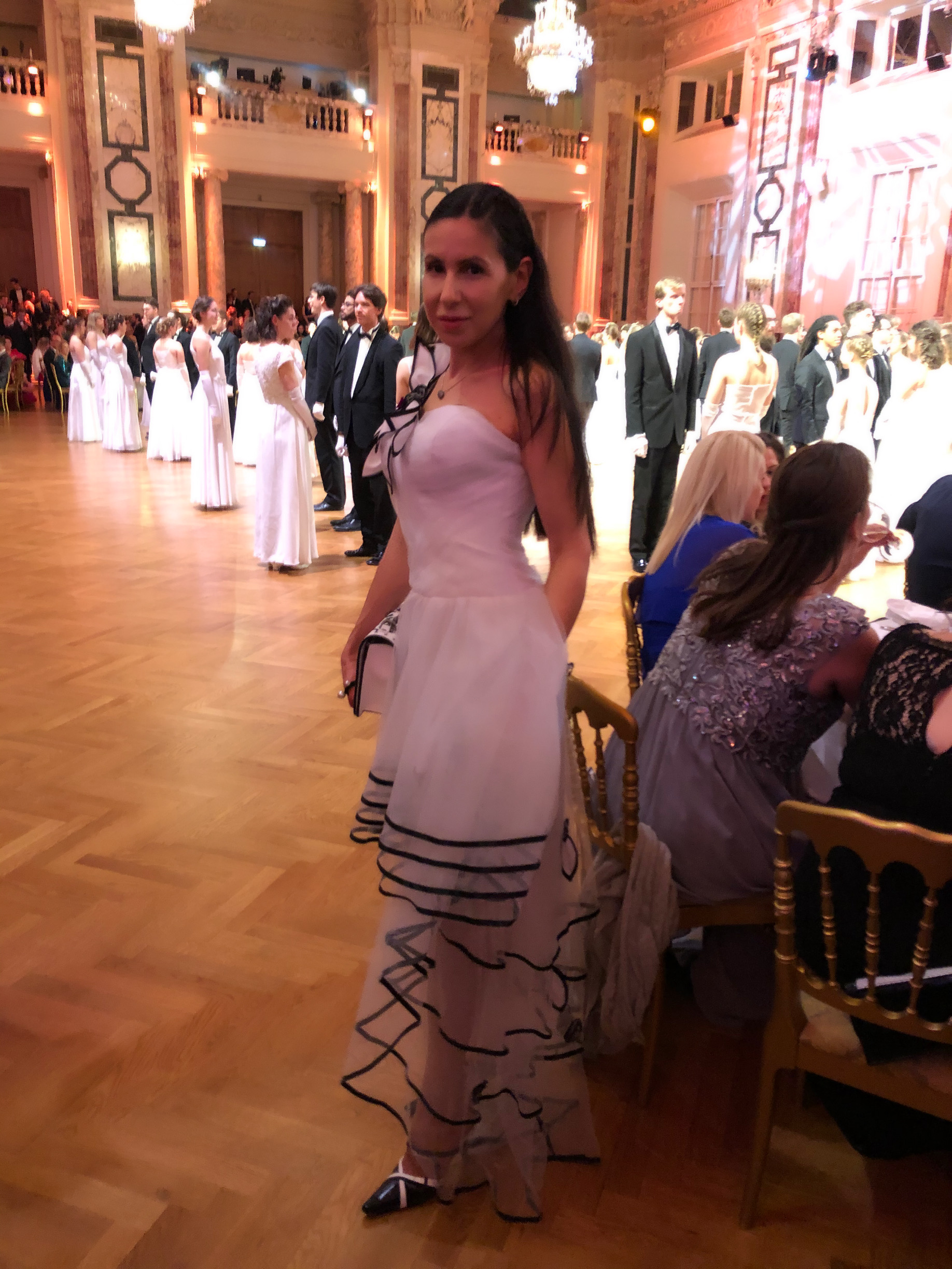 I am sharing with you some photos from this fabulous event. I was wearing a black and white dress, shoes and bag, trying to blend in with the waltz couple’s monochrome colors.