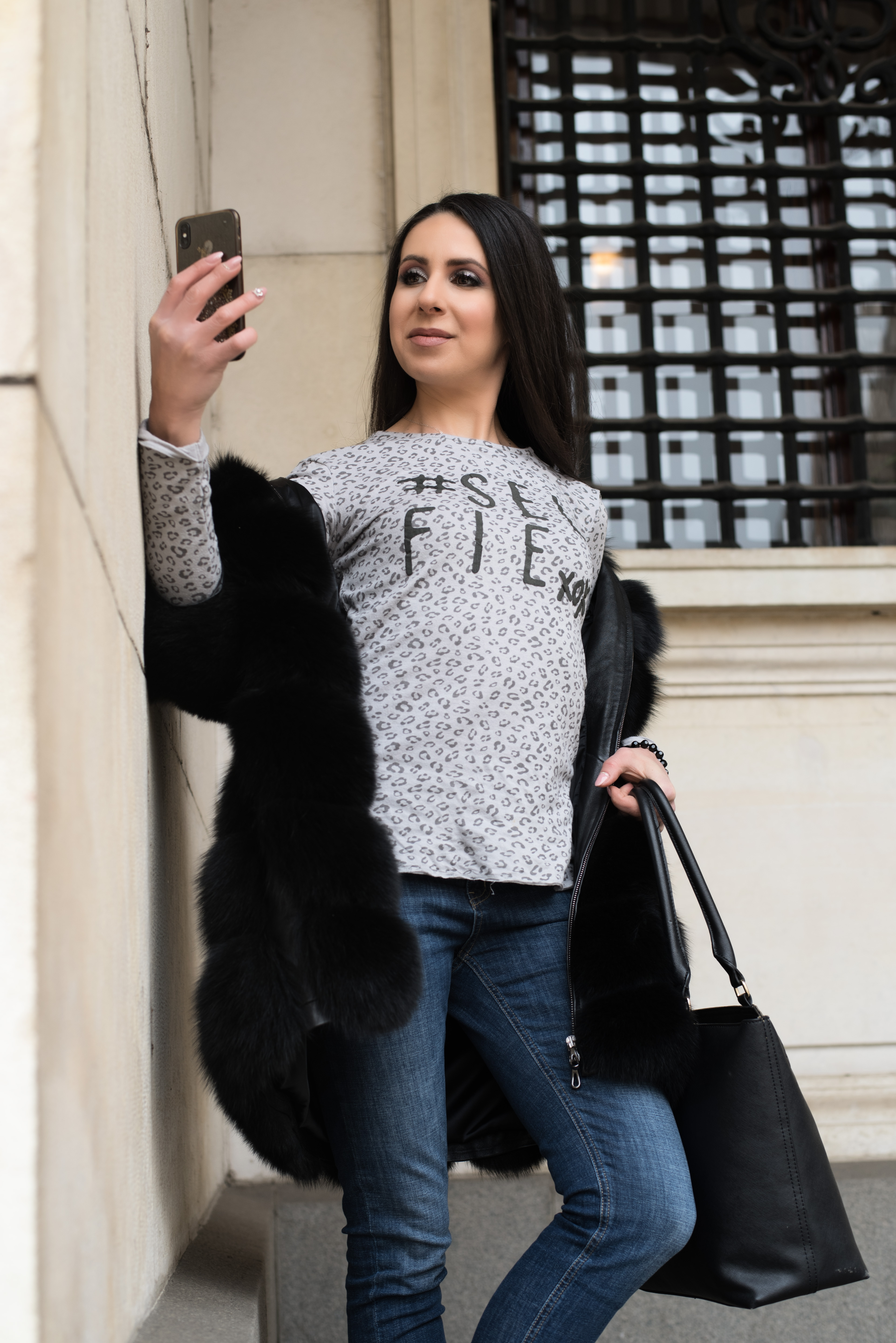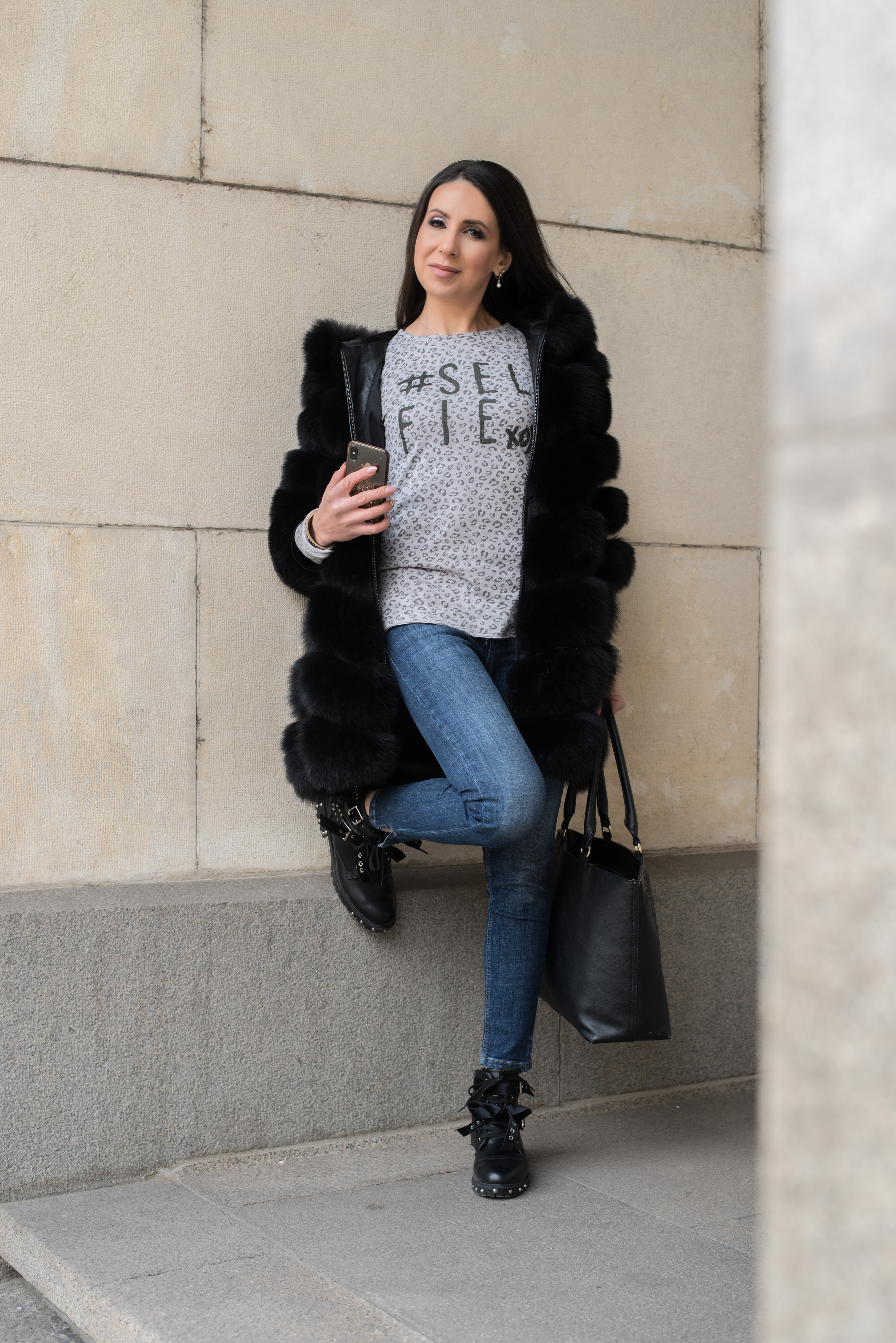 That said, I like it and taking selfies is fun – it’s also a quick and easy way to share something from myself. Today, I am wearing one of my favorite „Selfie“ T-shirt with a cool print, Jeans and rough shoes in which I‘m in love and of course trying to make some selfies. At the end, the professional camera, as you can see, is always the best way for a good shot.