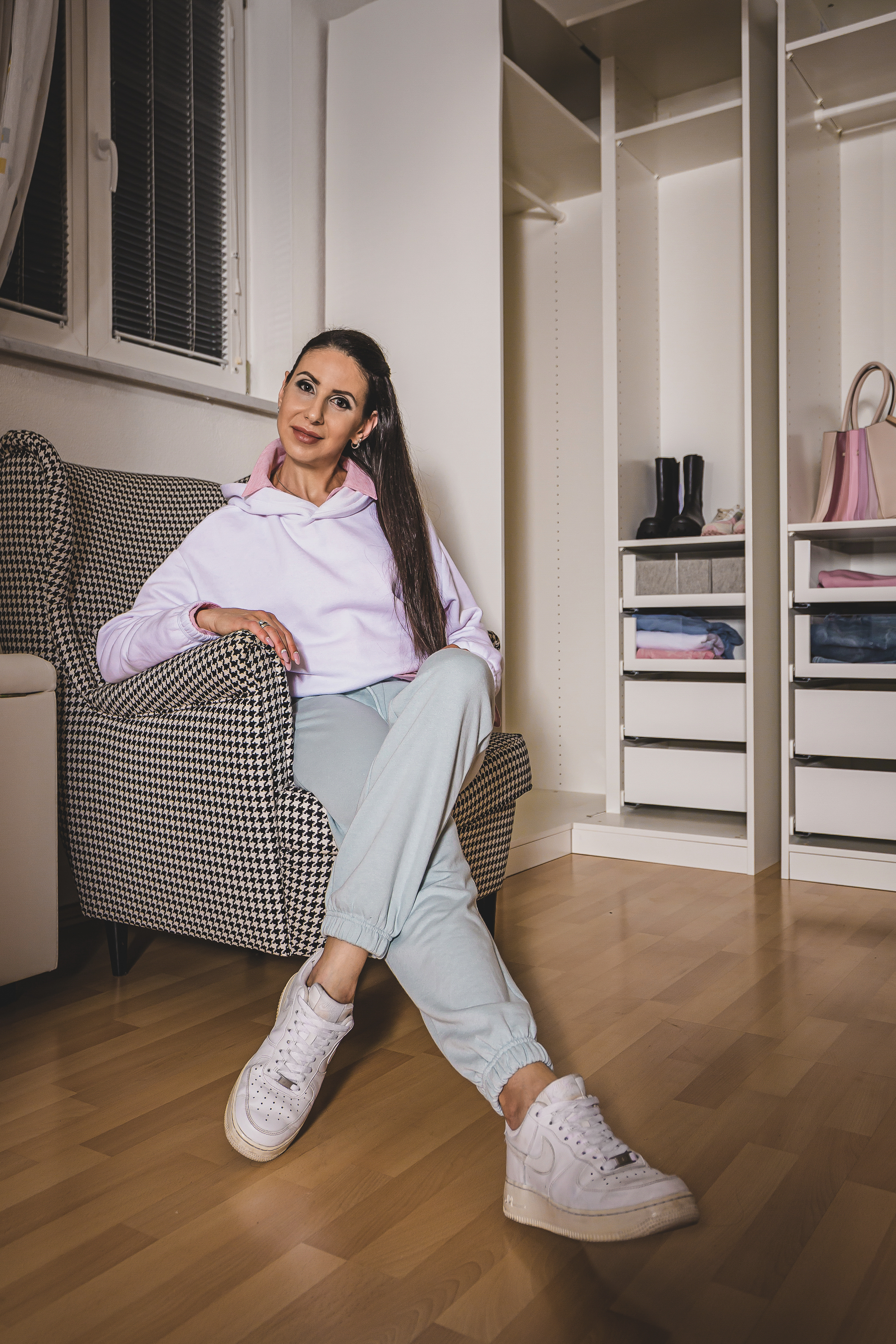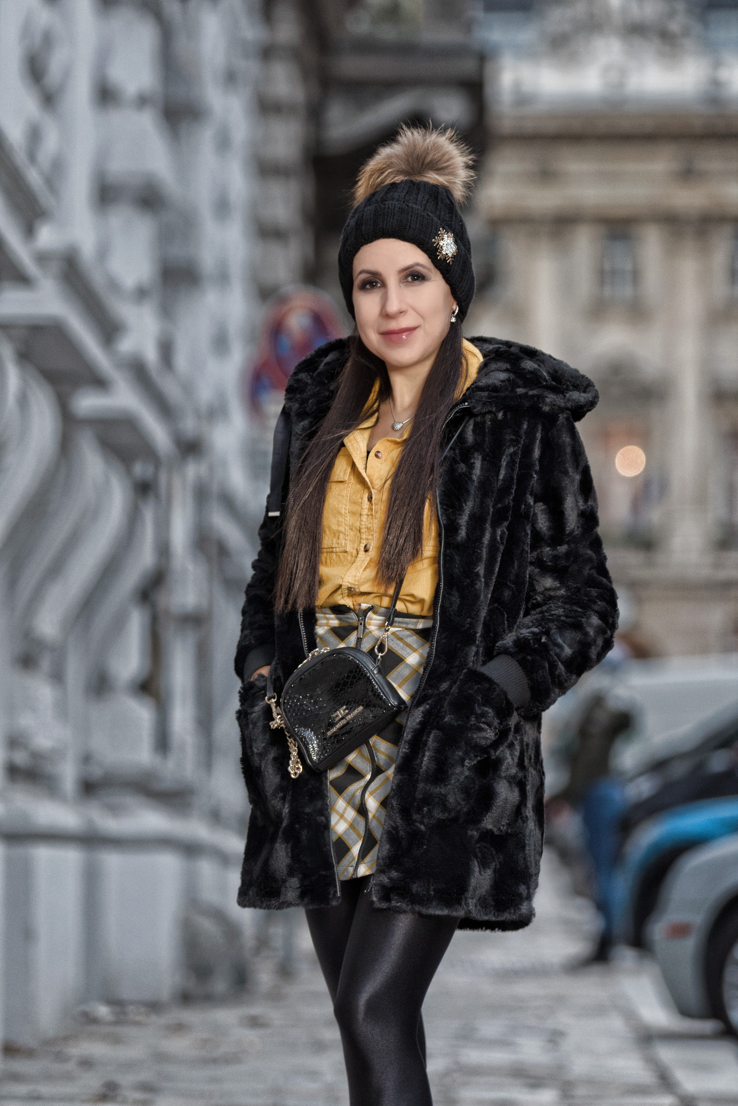 Now that it is so cold in Vienna, I really need a thick coat and this NA-KD one is one of my best choices – I just love it. Not only is it super warm and fluffy, but it’s also in one of my favorite colors this season. And the rest of this outfit I also matched in the same cream palette. I combined it with this great looking one-shoulder Zara sweater, white Gucci jeans and beige velour boots. I love layering up for the cold days and matching up similar light colors. To finish the outfit off I went for black accessories – one of my favorite Pinko bags, a black beanie and gloves, both decorated with cream pearls, I hope you like it!