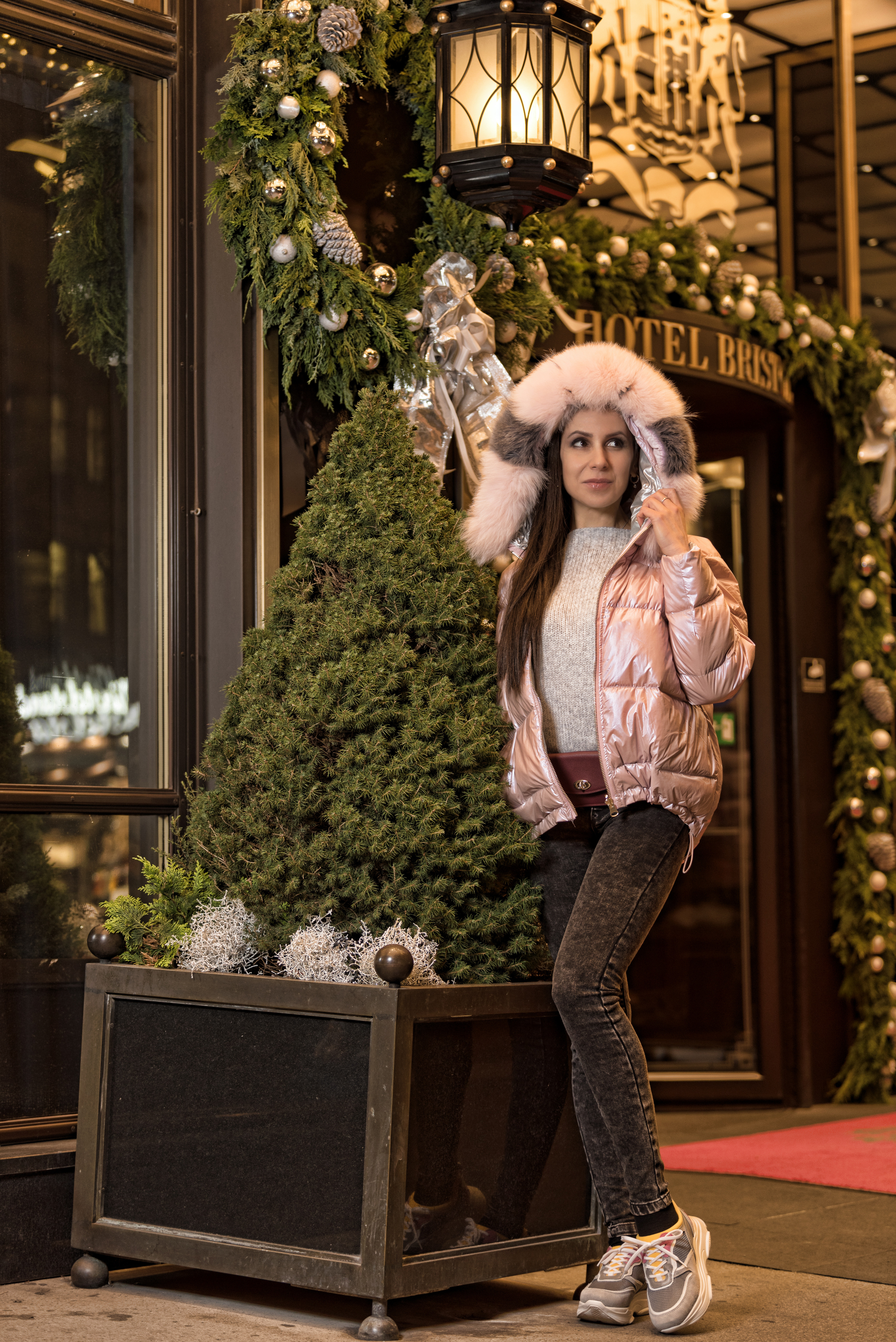 My photos today are again from Vienna, which in the evenings looks really fairly, wrapped in softy Zara sweater, also Zara skinny Jeans and Sacha Sneakers.